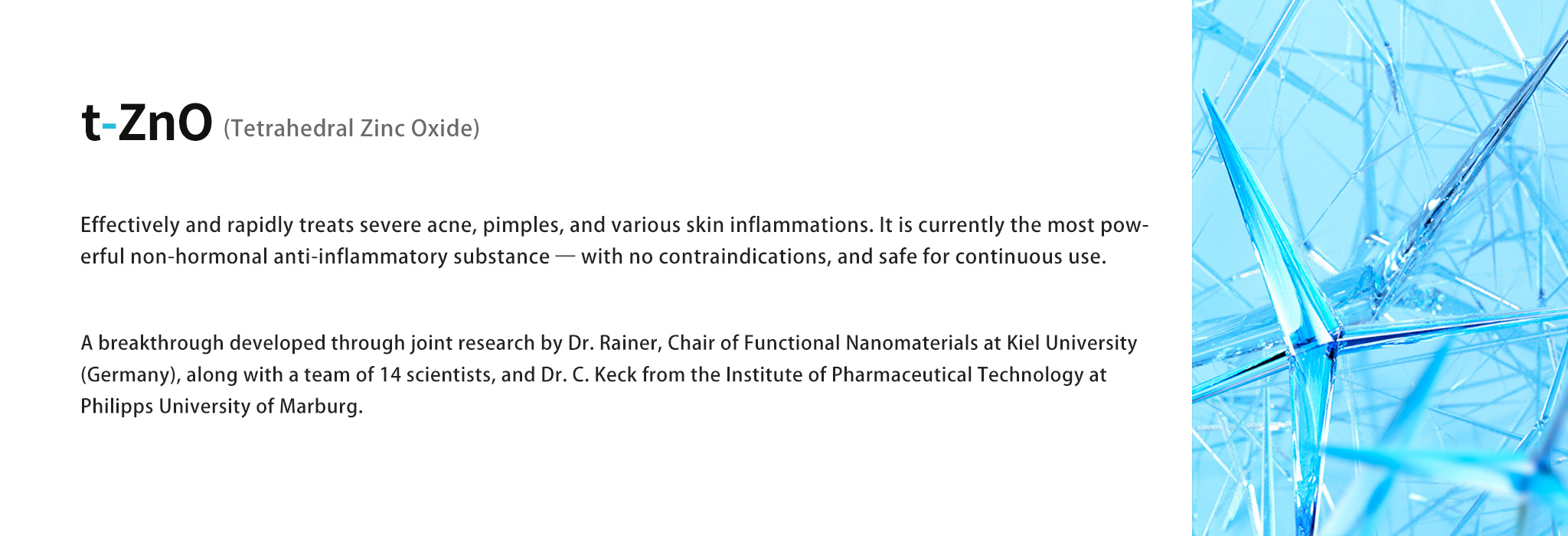 Due to its extremely high safety, t-ZnO is particularly suitable for external preparations for infants, young children, and adolescents.
